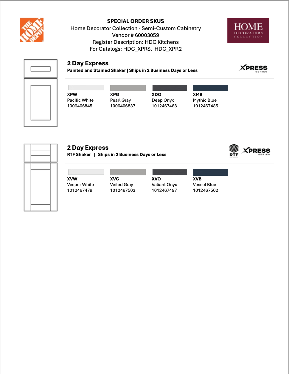 Express is now available in a total of 8 style/color choices in a choice of a Premium Painted Finish or Rigid Thermofoil (RTF).